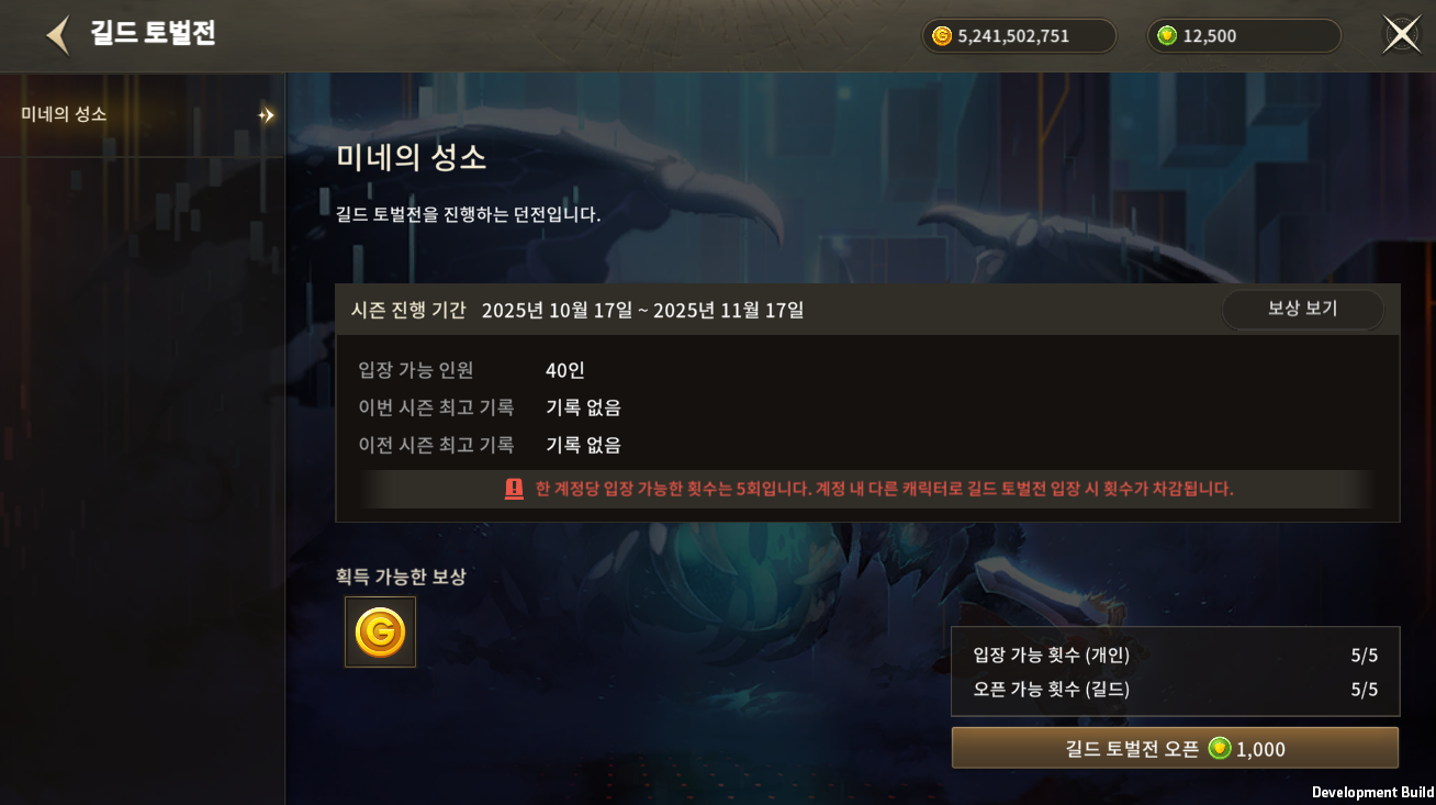 - 길드장이 토벌전 오픈을 진행해야 미네의 성소로 입장이 가능합니다.