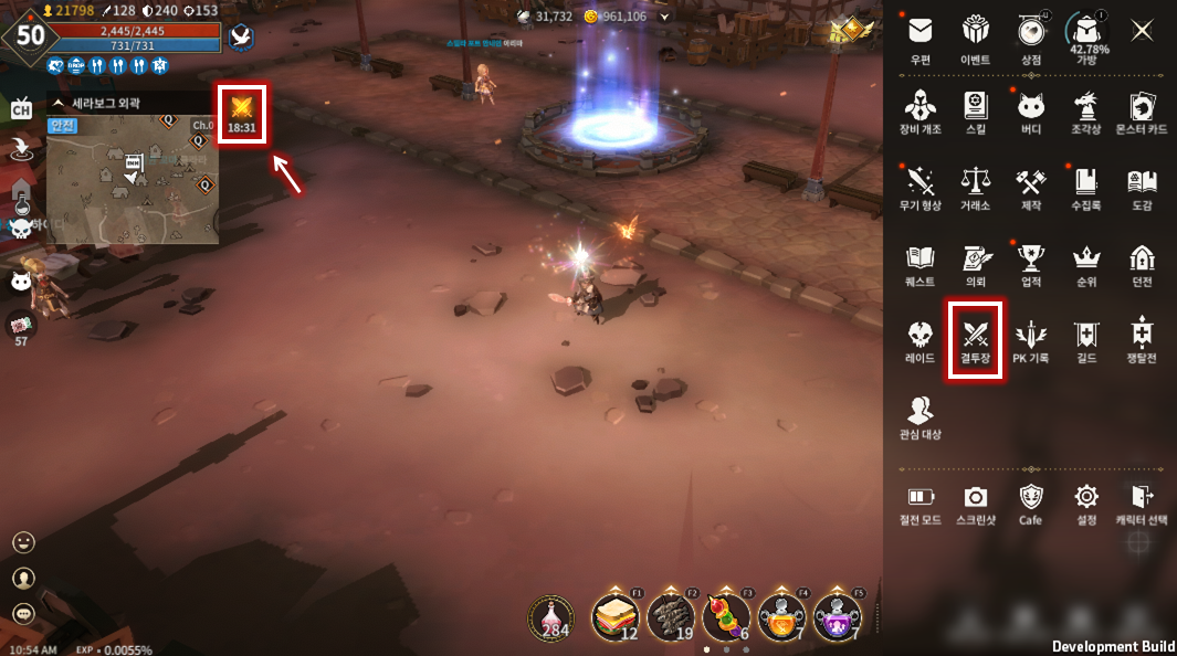 결투장은 사이드 메뉴의 결투장 아이콘으로 입장 가능합니다.