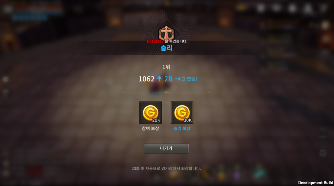 - 결투장에서 승리한다면 결투장 점수를 얻을 수 있고 반대로 아쉽게 패배한다면 점수를 잃게 됩니다.