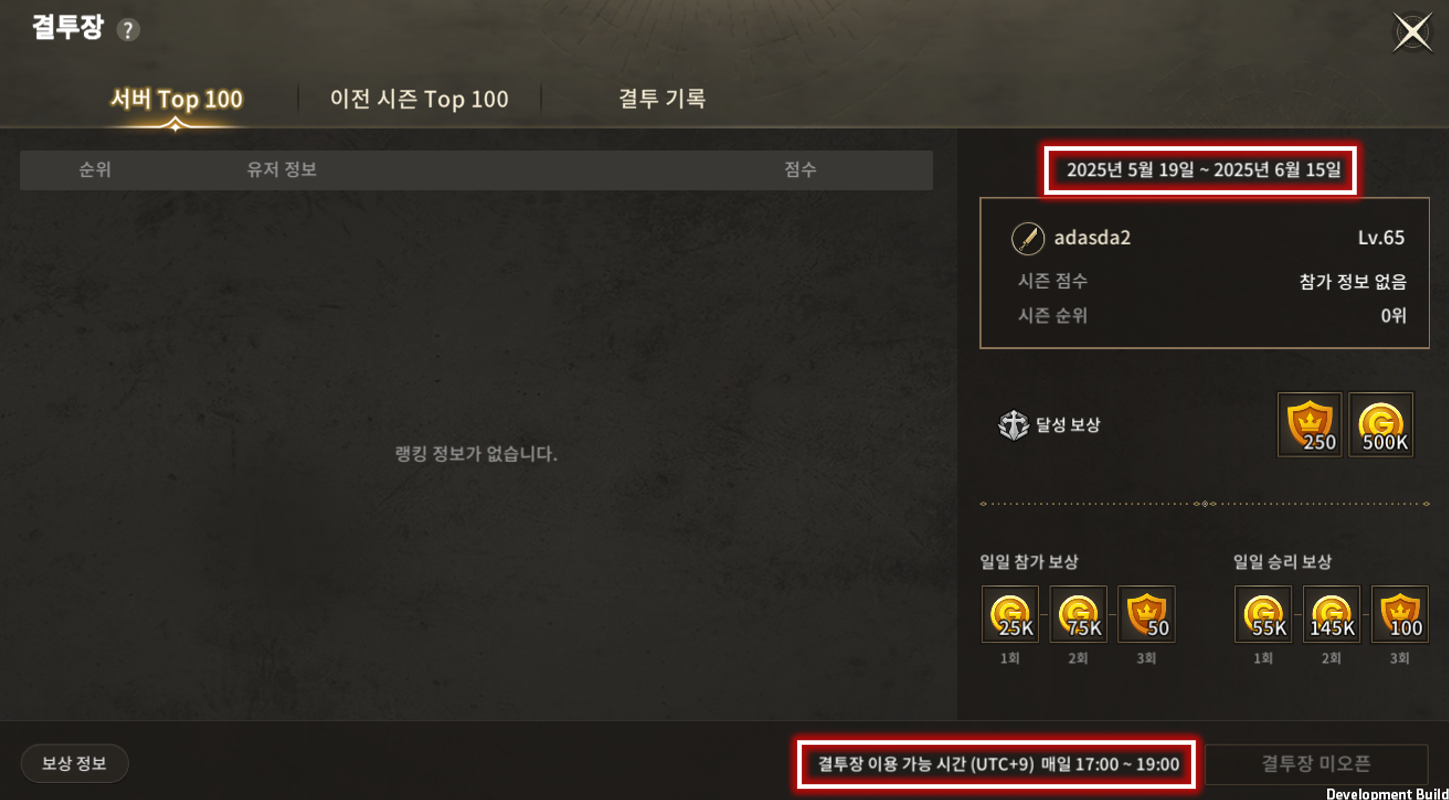 | 5 | 시즌 기간 | 결투장이 진행되는 시즌의 기간이 표시됩니다. |