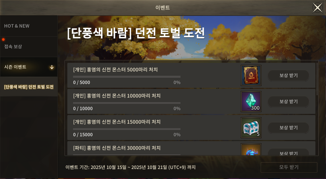[개인] 홍염의 신전 몬스터 5000마리 처치 | ![]() 특별한 이벤트 카드팩 (캐릭터) |