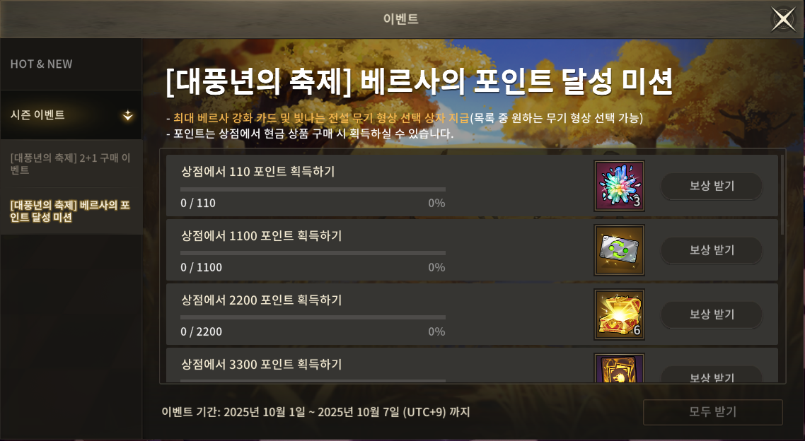 ◈ [대풍년의 축제] 베르사의 포인트 달성 미션
