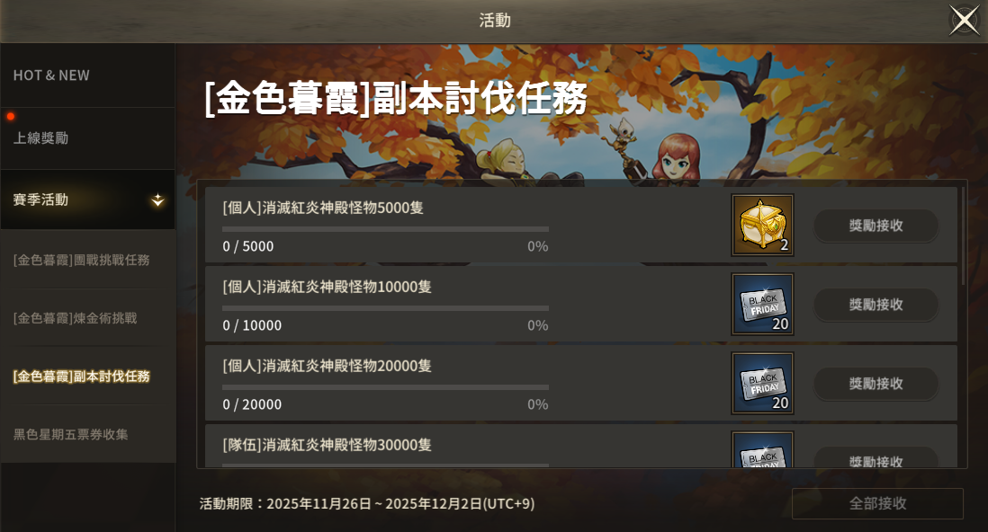 | [個人]消滅紅炎神殿怪物 20000 隻 | 黑色星期五票券 (角色) |