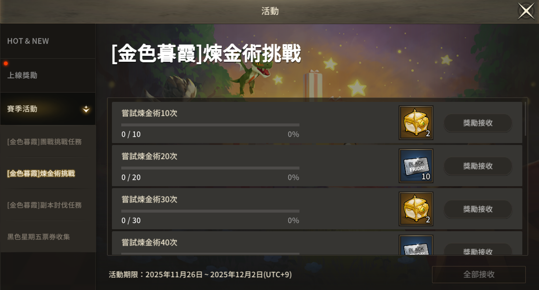 | 嘗試祝福煉金術 25 次 | 黑色星期五票券(角色) |