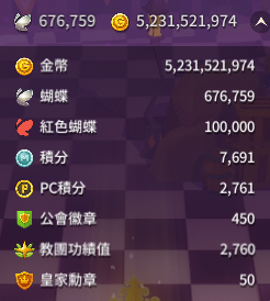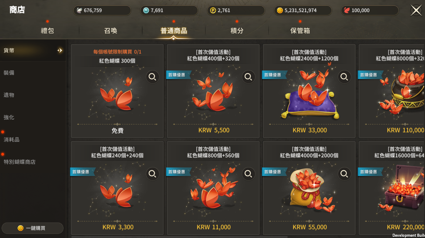 - 紅色蝴蝶可於【商店】>【一般商品】>【紅色蝴蝶充值】中購買。