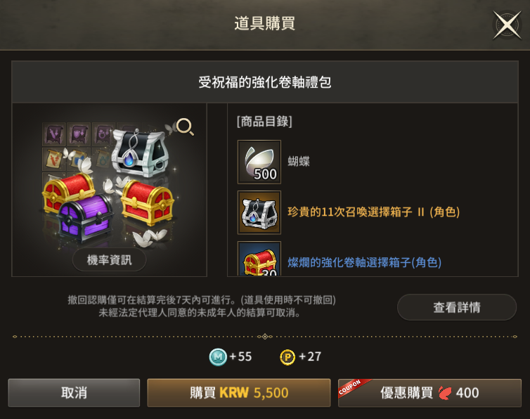- 購買的紅色蝴蝶會移至保管箱,必須從保管箱領取後才能持有並使用。