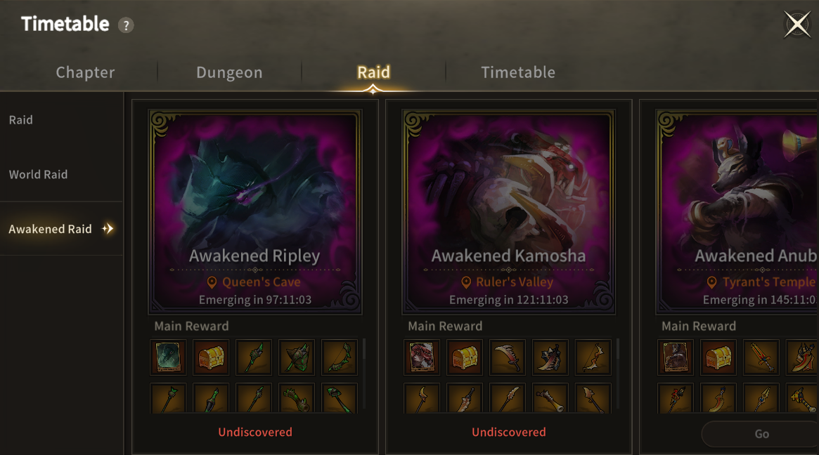 | Tue. 18:30 | Awakened Kamosha | Baran - Ruler's Valley |