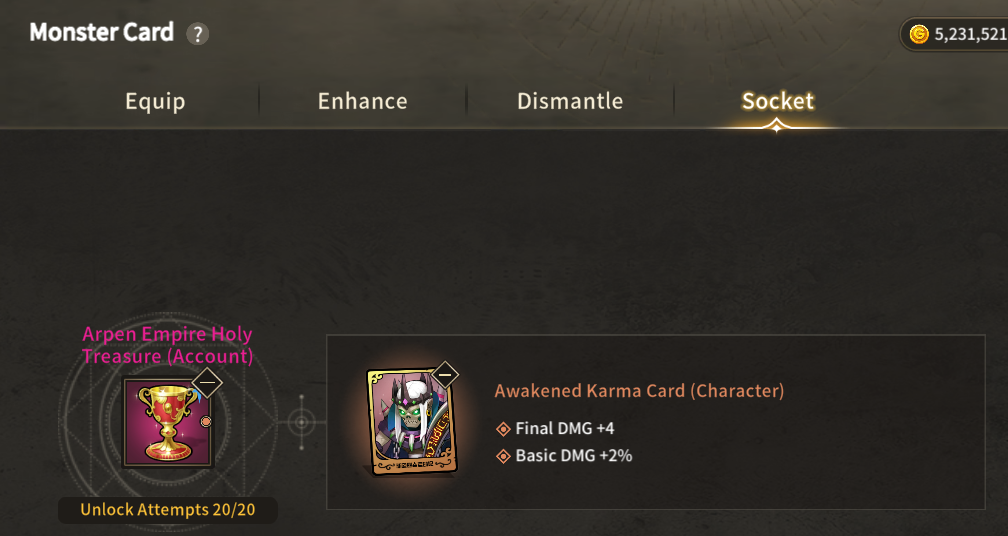 2. Monster Card Socket to Unique Grade Relic Equipment